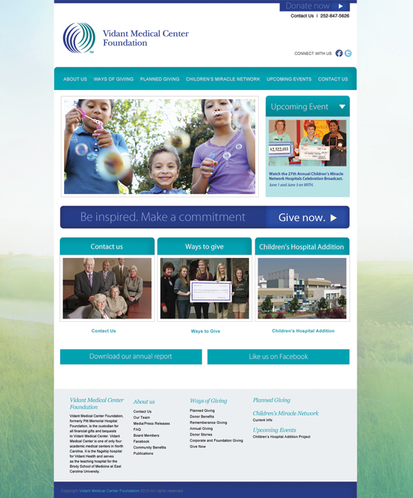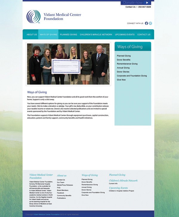Web site design for Vidant Medical Center Foundation, an organization that manages financial gifts for Vidant Medical Center (formerly Pitt County Memorial Hospital).